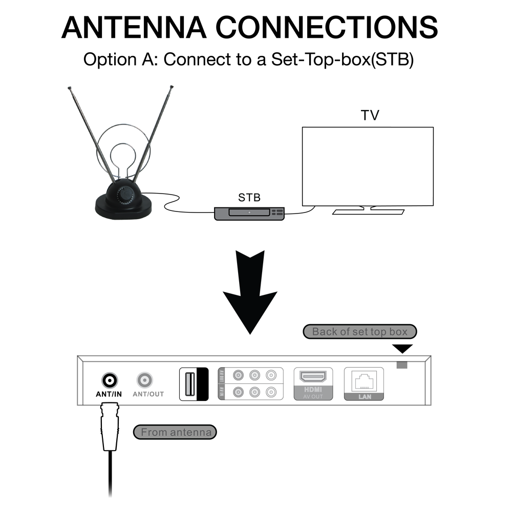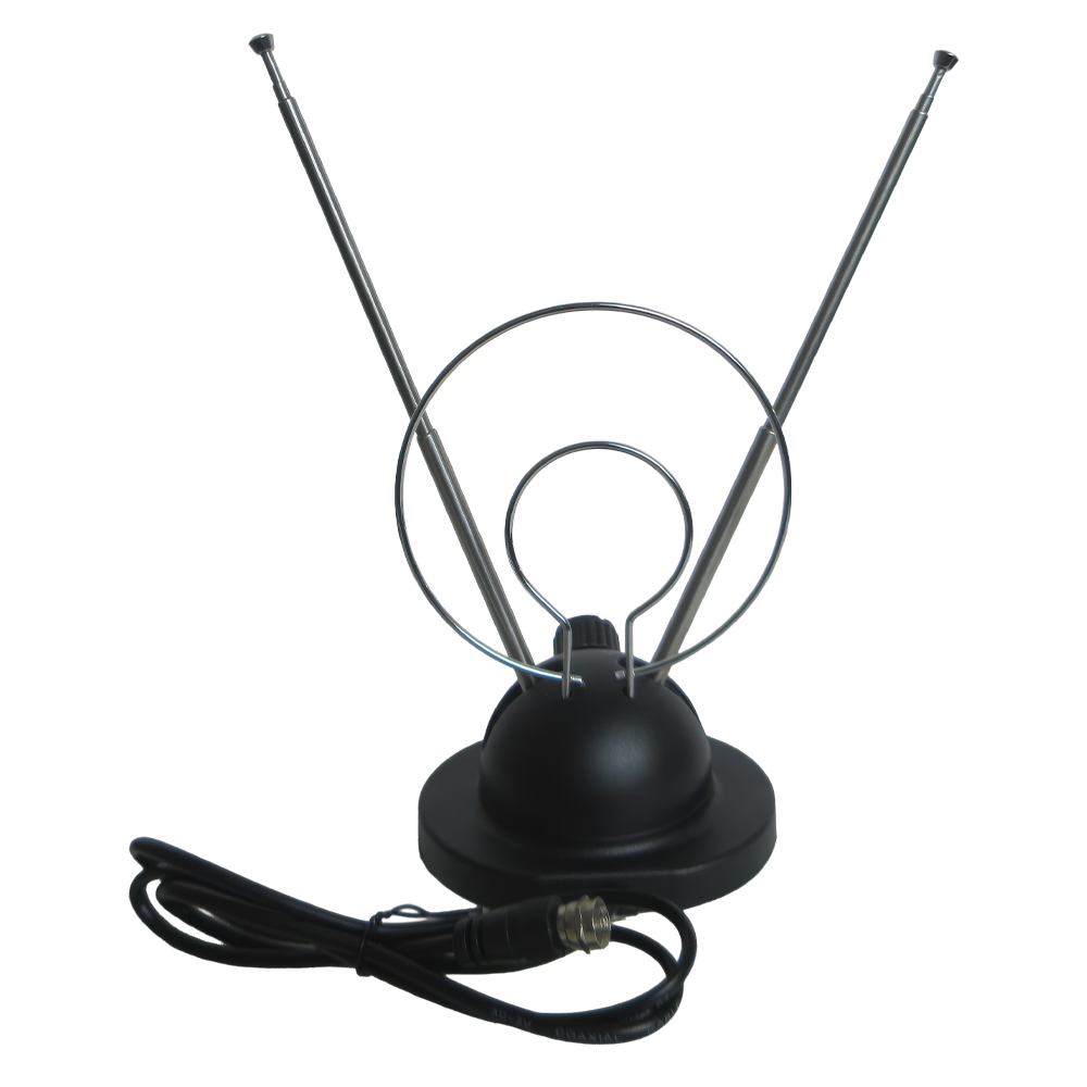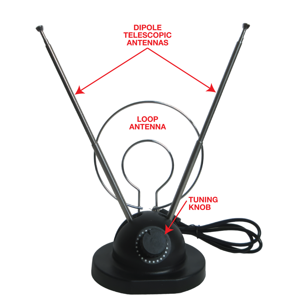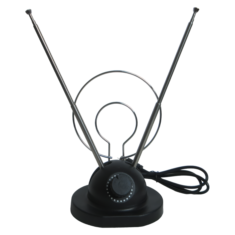 The ANT-22 is a compact, over-the-air (OTA) TV telescoping, “rabbit ear” antenna capable of receiving free local HDTV stations and more. Say goodbye to costly cable and satellite subscriptions—keep enjoying your favorite shows broadcast on local channels and more. Simply adjust the dipole antenna and tuning dial for optimal reception, then run a channel scan on your TV to view a wide range of free over-the-air programming.