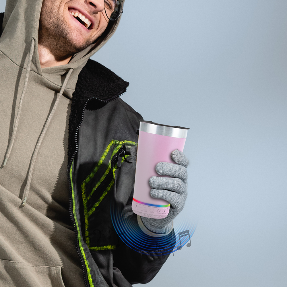 STAINLESS STEEL 16.oz INSULATED MUG + BLUETOOTH SPEAKER WITH MULTI-COLOR LED LIGHTS