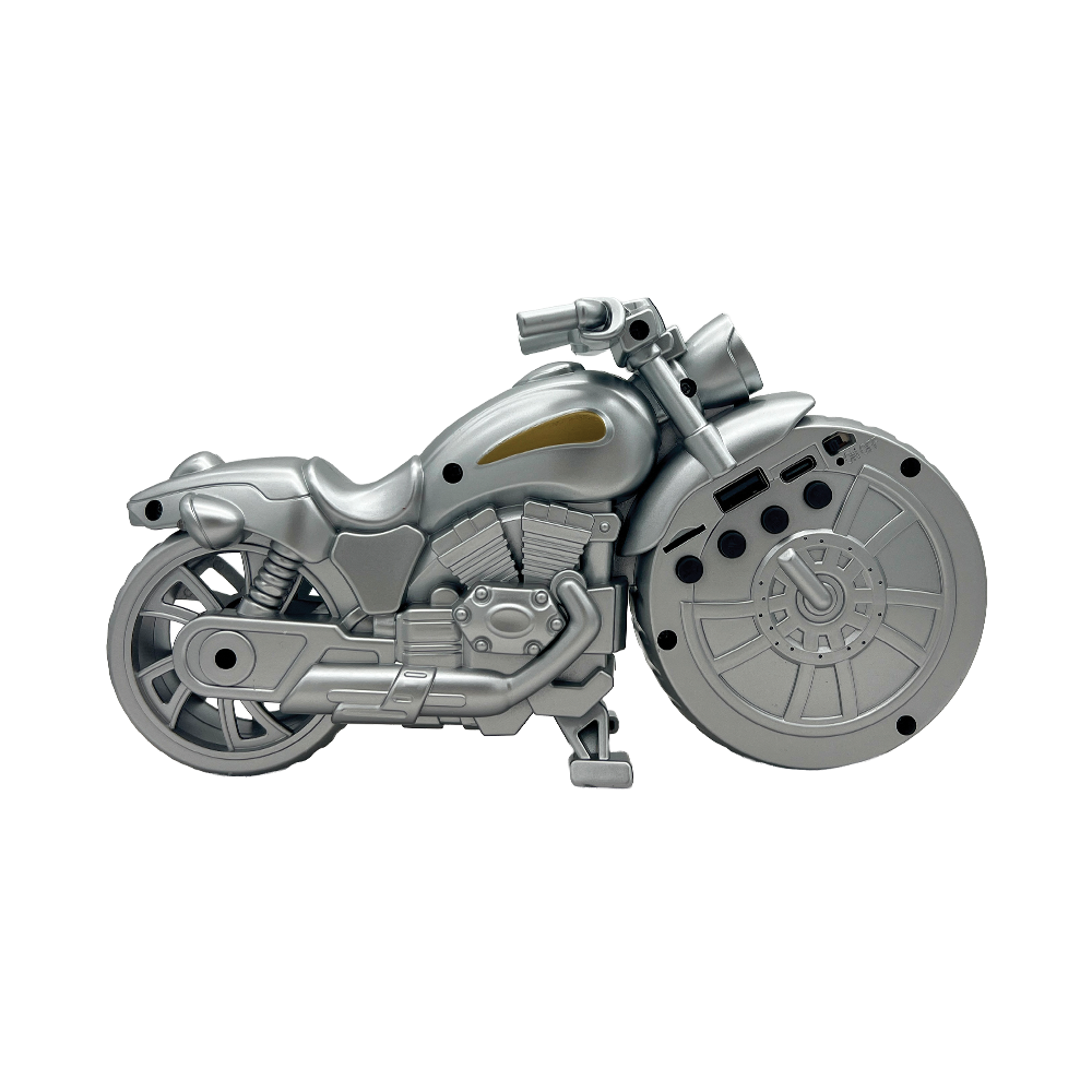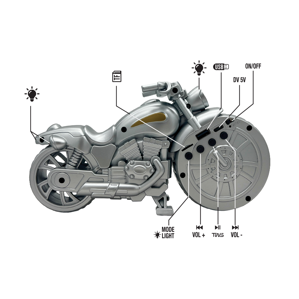 Introducing a blast from the past with a modern twist! The BT-1952 is a portable, rechargeable Bluetooth speaker inspired by iconic motorcycles of the 1950s. It boasts a full-range speaker and is decked out with built-in LED party light in the front wheel with a front headlight and rear tail light. Connect your mobile device via Bluetooth and stream your favorite tunes. Plus, it supports MP3 playback from USB drives or TF cards. For an even richer audio experience, add a second BT-1952 and enjoy True Wireless Stereo (TWS) sound. Enjoy a wide-open throttle ride to nostalgia and music!