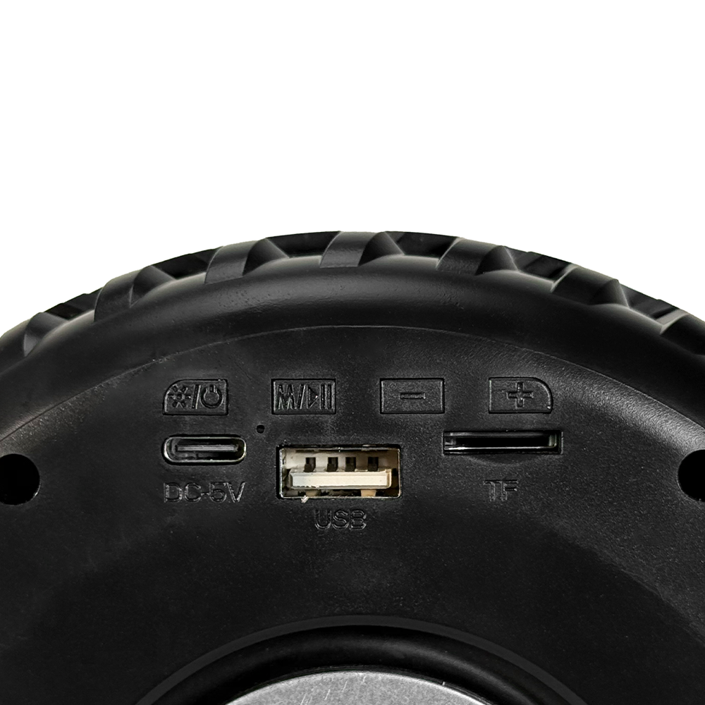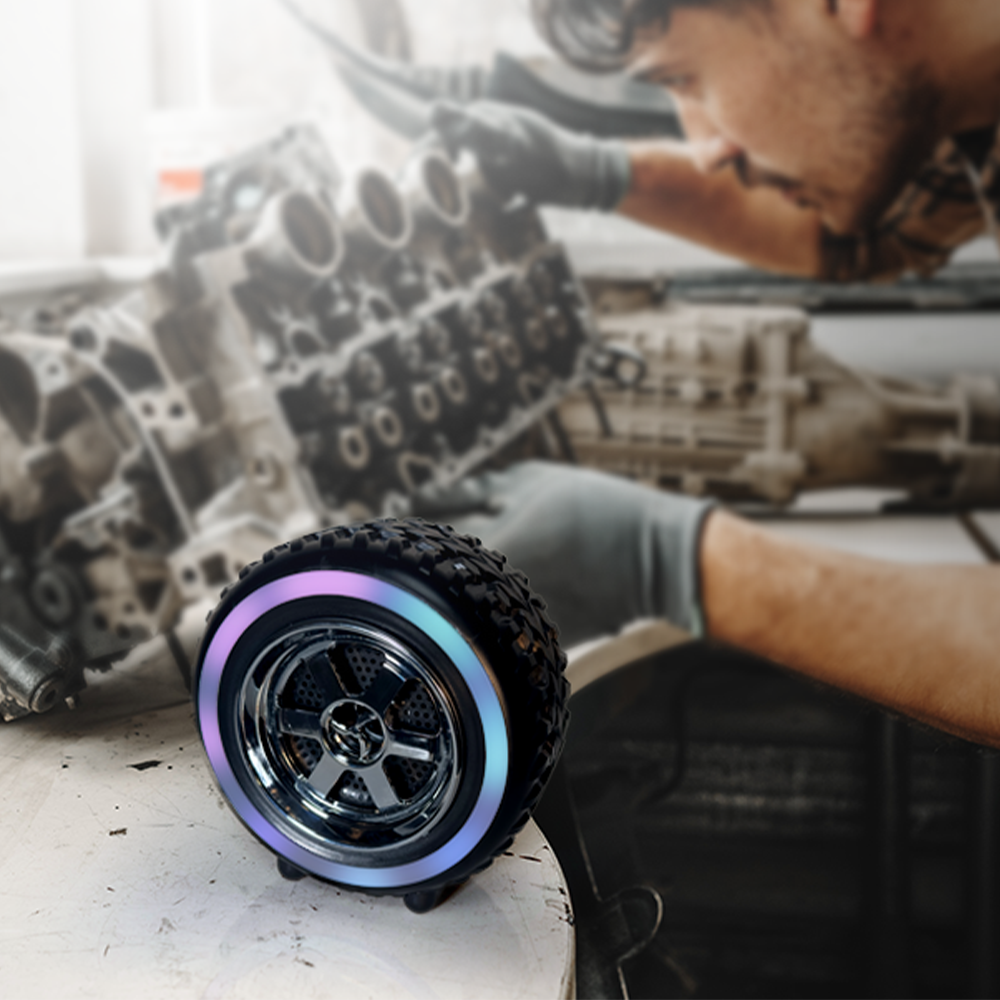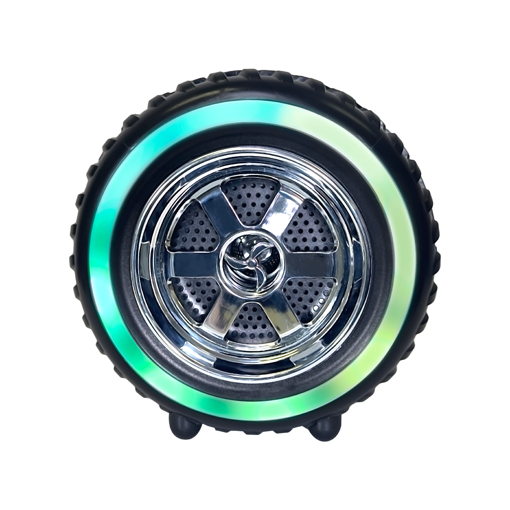 Rev up your engines and burn rubber with the BT-220; a tire-inspired rechargeable Bluetooth speaker! It boasts a full-range speaker with a booming sound. Built-in multi-color LED party lights all around the wheel will keep your party going. Connect your mobile device via Bluetooth and stream your favorite tunes. Enjoy FM radio or play MP3 songs from USB drives or TF cards. For an even richer audio experience, add a second BT-220 and enjoy True Wireless Stereo (TWS) sound. Experience a wild ride down the road with an exciting music and light show!