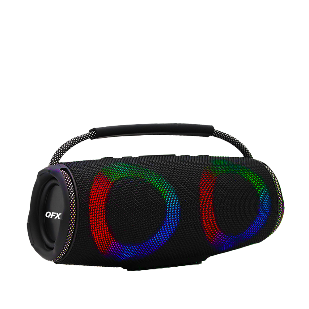 The BT-402 is a rechargeable Bluetooth boombox with built-in LED RGB lights making it a great choice for your next gathering with friends or family. Enjoy Bluetooth audio streaming from your mobile device, FM radio or play MP3 music stored on USB drives and TF cards or connect the output of a portable music player to the AUX input. Preset EQ modes allow you set just the right sound to match to your music. It has a sturdy handle on top for listening to music at home or on the go. Add a second BT-402 and enjoy True Wireless Stereo (TWS) sound.
