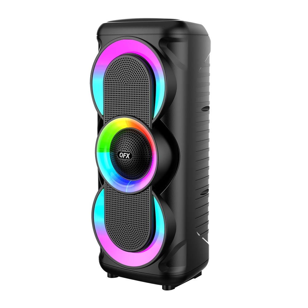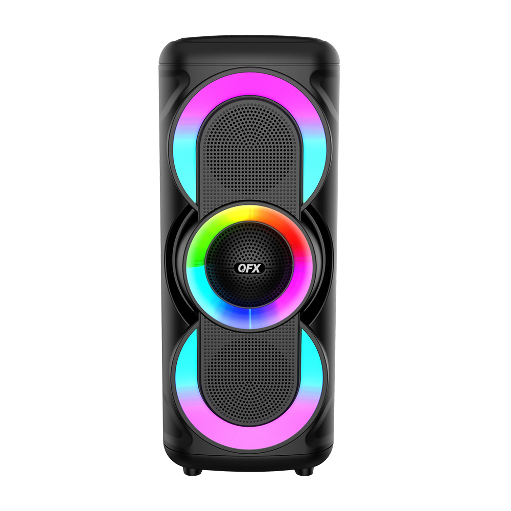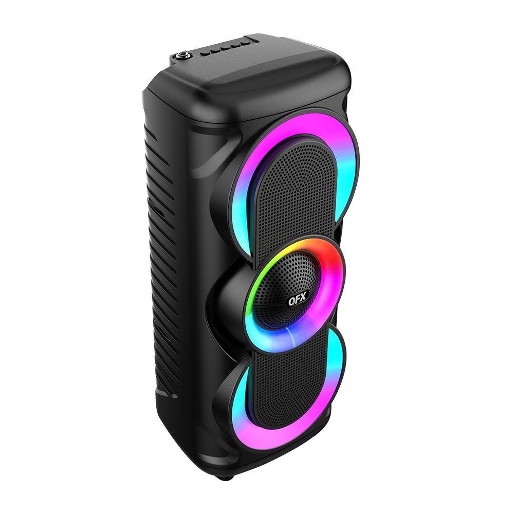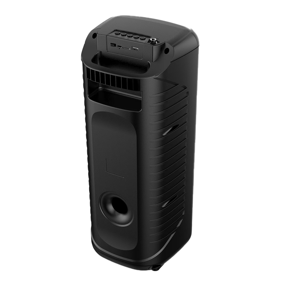 The BT-43 is a triple 3” rechargeable party speaker with multi-color LED lights. Play music from a variety of sources including Bluetooth-enabled devices, FM radio or music stored on USB drives or TF cards. Plug in a wired microphone to the mic input and start your own karaoke party. Add a second BT-43 and enjoy True Wireless Stereo (TWS) sound.