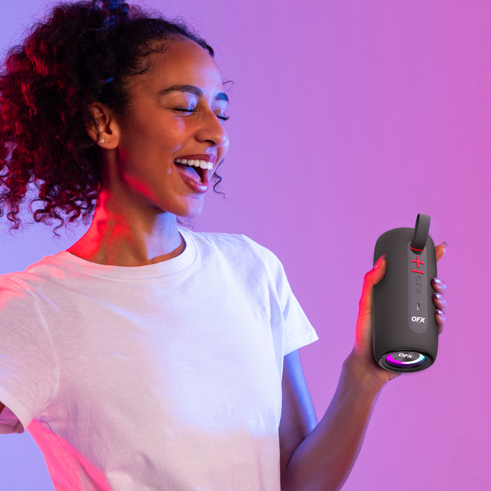 The BT-5 is a portable rechargeable Bluetooth speaker with multi-color lights to create the perfect setting at your next party or event. It features two 3” speakers built in with a wide range of music options including Bluetooth streaming, FM radio as well as MP3 music file playback from USB drives or TF cards. You can also connect the output of your portable music player directly to the AUX input. Connect a second BT-5 and enjoy True Wireless Stereo (TWS) sound. The convenient handle on top makes it easy to transport.