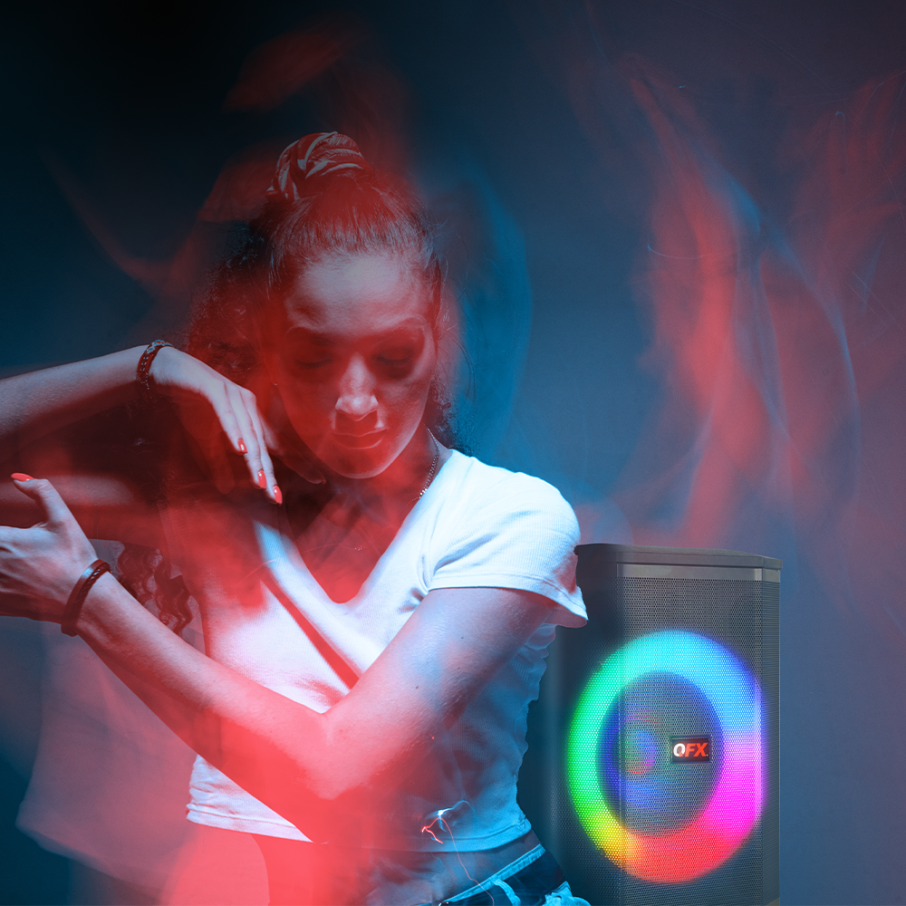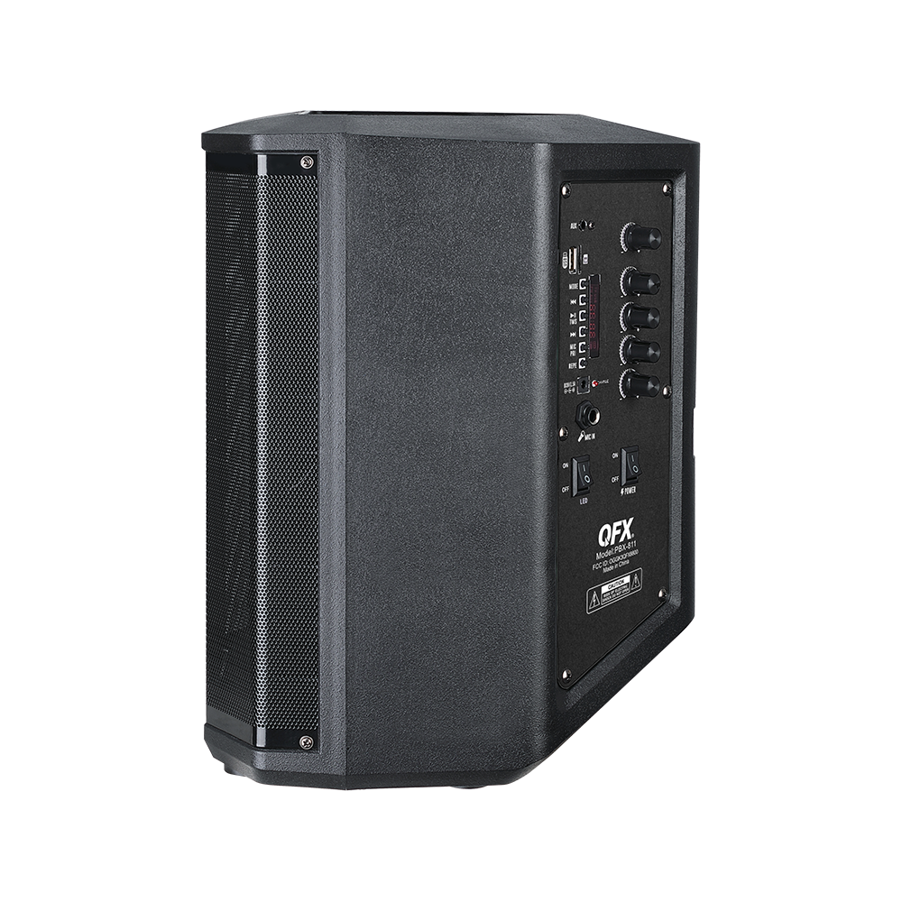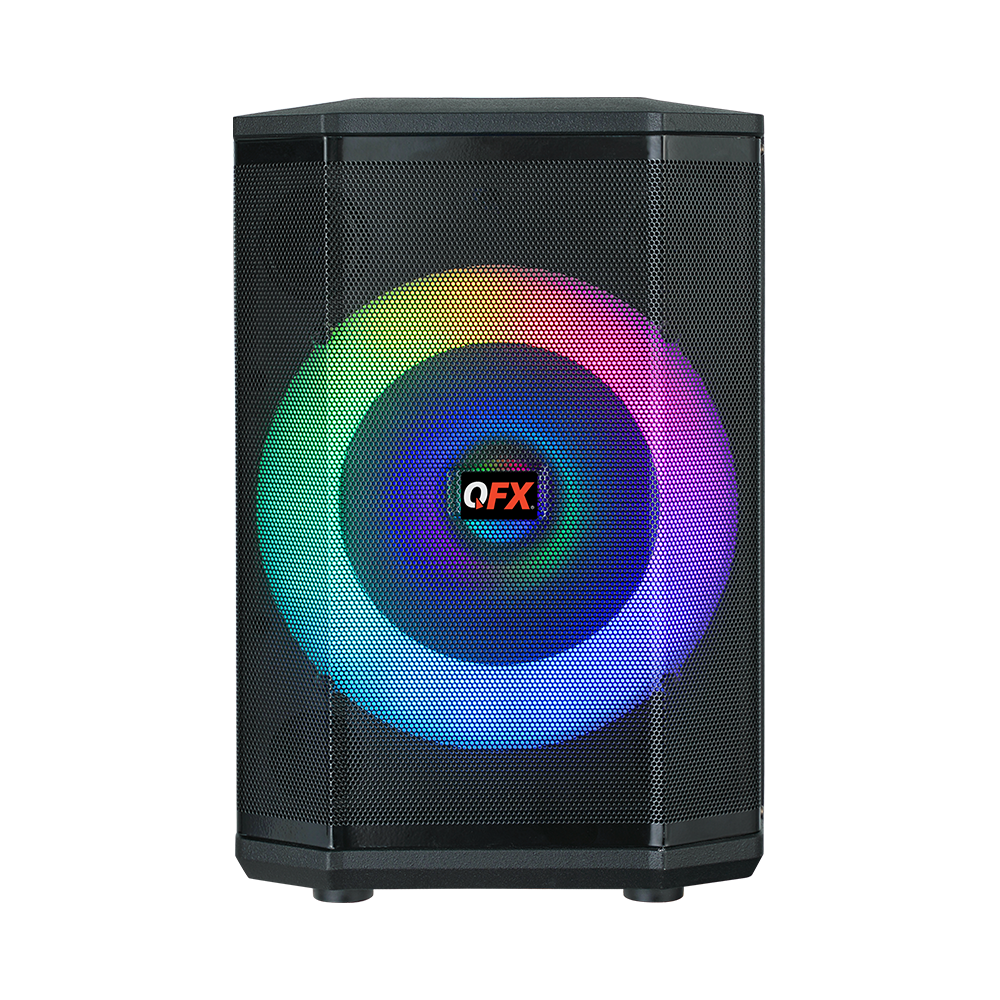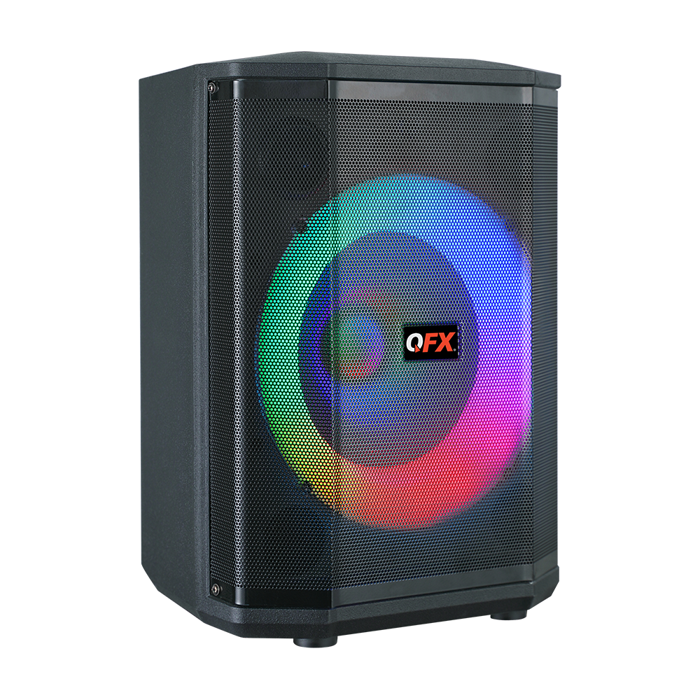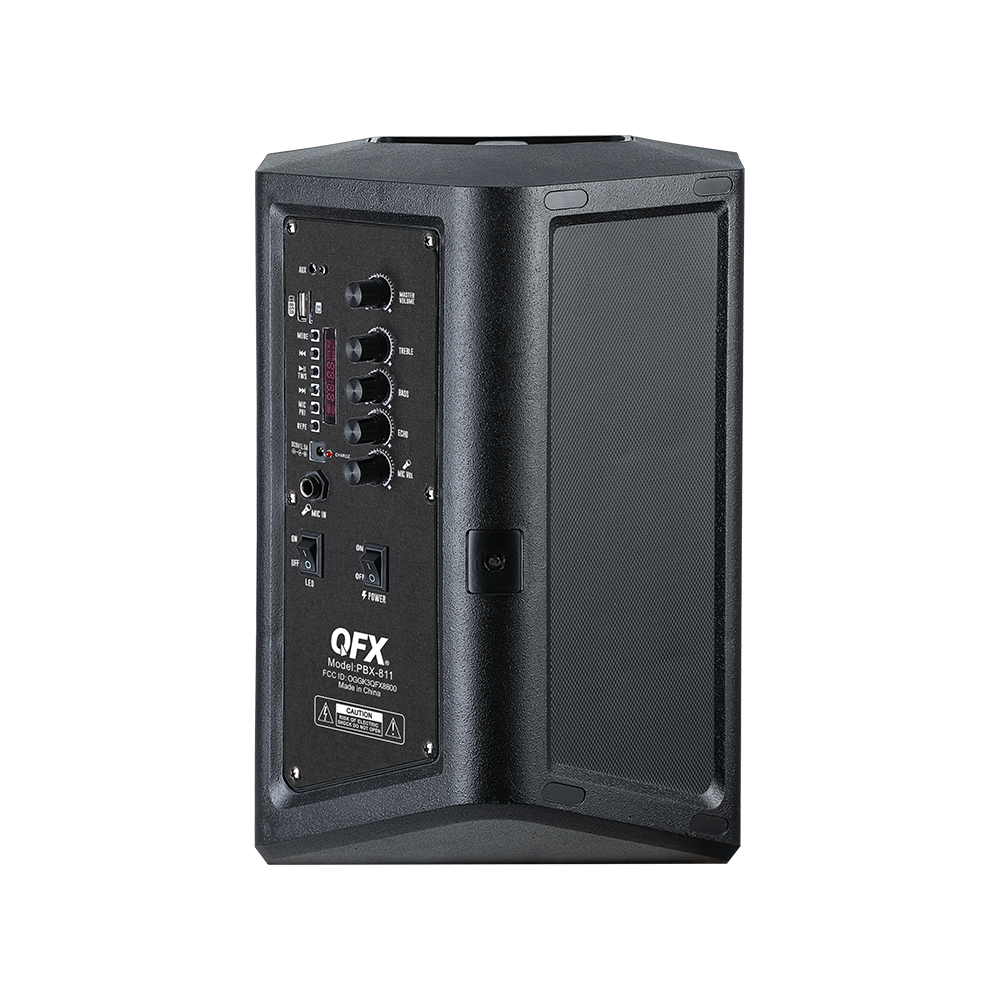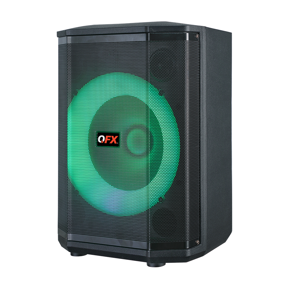 Turn up the volume and light up the night with the PBX-811; a portable party PA system built for performance and fun. Featuring an 8” woofer and a 1.5” tweeter, this rugged speaker delivers crisp, clear sound. Host karaoke nights, make announcements, or hype up the crowd with the included two wired microphones, one wireless microphone and remote control. Fine-tune your audio with treble, bass, mic echo, and volume controls to get the sound just the way you like it. Dynamic multi-color LED lights create an instant party vibe. Stream wirelessly via Bluetooth, tune in to FM radio, connect to the AUX input or play MP3 tracks from USB drives and TF cards. Pair two PBX-811 speakers for an immersive stereo sound that fills the room. With its built-in handle and rechargeable battery, the PBX-811 is the perfect choice for party entertainment on the go.