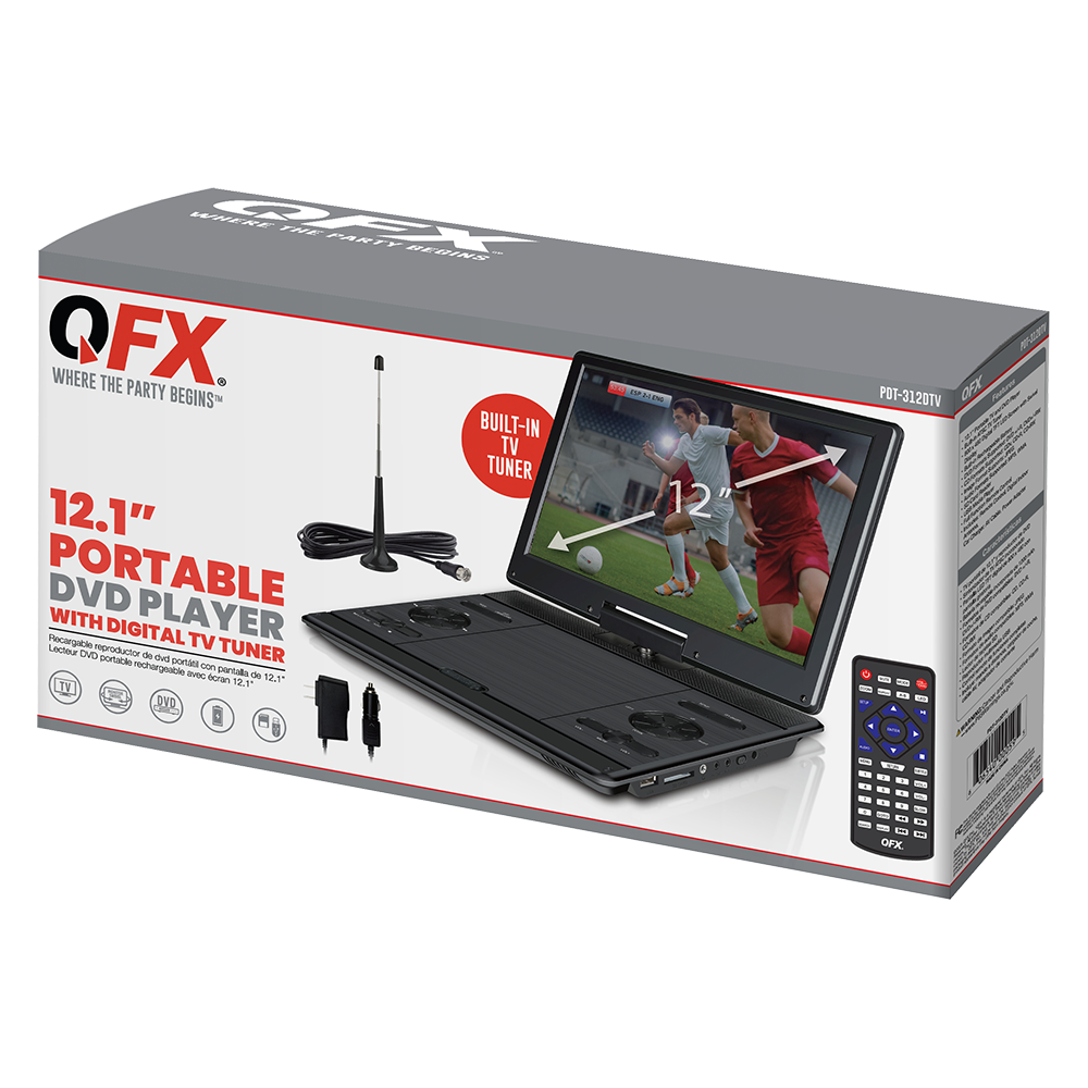PORTABLE RECHARGEABLE 12” TFT DVD/CD PLAYER, TV AND MEDIA PLAYER WITH DIGITAL INDOOR ANTENNA