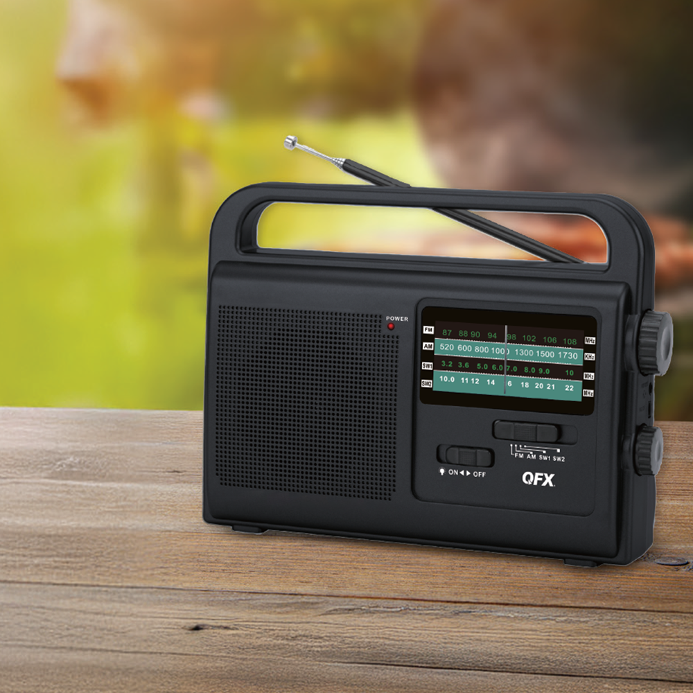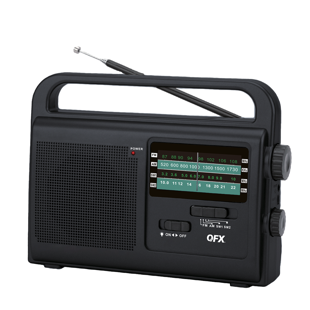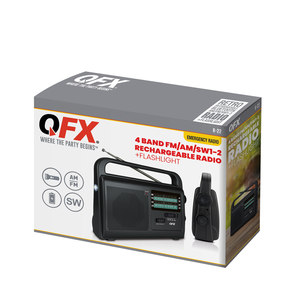 The R-22 is a rechargeable 4-band (AM/FM/SW1-2) emergency radio with retractable antenna. A built‑in LED flashlight on the side will provide illumination in dark environments when you need it most. The top‑mounted handle makes it easy to grab and go whenever your next adventure or an emergency occurs.