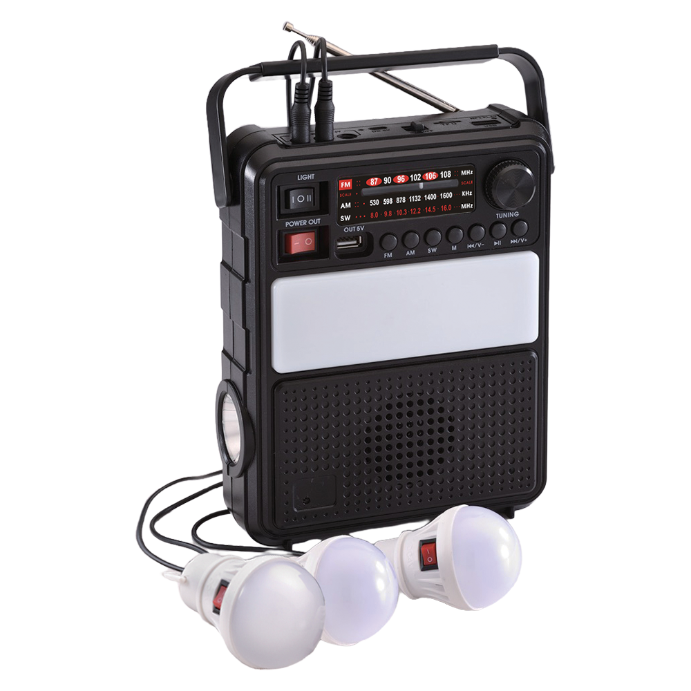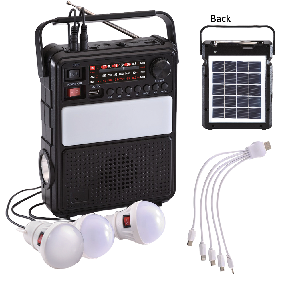 SOLAR RECHARGEABLE 3-BAND RADIO WITH FRONT, SIDE AND EXTERNAL LED LIGHTS