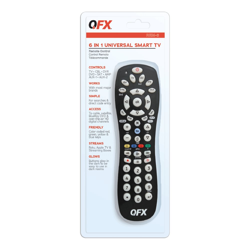 The REM-6 is a 6-in-1, universal remote control. Designed to operate up to six separate devices, including your TV, Blu-ray player, DVD, cable, satellite and more, this universal remote lets you consolidate your controllers into one ergonomic, handheld device. It’s easy to use with a code saver feature, four preset color buttons as well as glow in the dark buttons making it easy to use in dimly lit home theater settings.