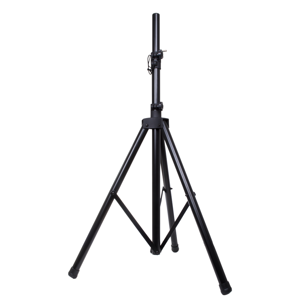 The QFX S-14 is a compact, large size tripod speaker stand designed for mid to large-size speakers with 1.3” diameter hole mount with a load capacity up to 80 pounds. It features a collapsible tripod design which makes it easy to transport. It is adjustable from 46” to 72” and includes a support pin for optimal and secure speaker placement.